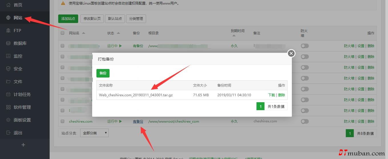 宝塔面板网站备份文件默认地址是在/www/backup/site这个目录内。