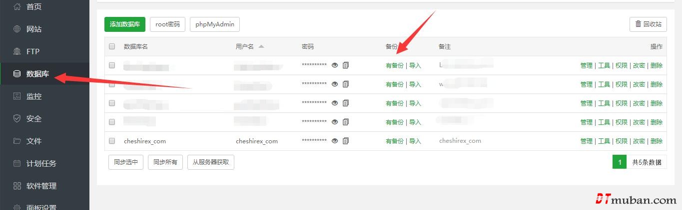 数据库备份也比较简单,而且数据体积一般都不大。我们在数据库列表里直接备份下载,然后到新服务器上传输上去并且导入即可。