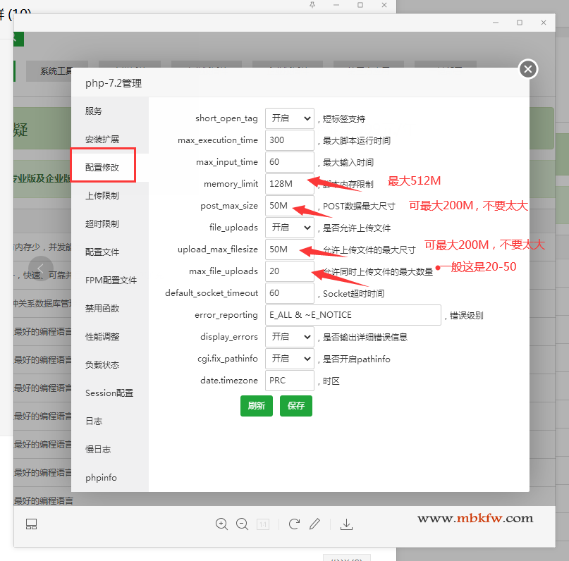 宝塔里修改上传限制和优化php配置,一共分5个步骤,具体看图