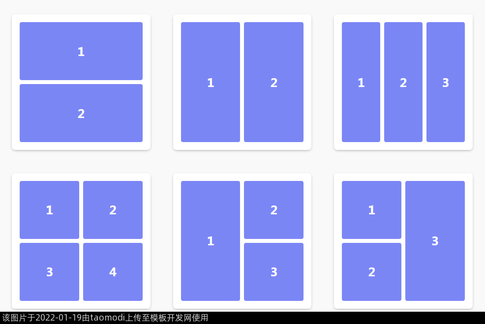 <!DOCTYPE html> <html lang="en"> <head> <meta charset="UTF-8"> <title>CodePen - Layout Templates with CSS Grid</title> <meta name="viewport" content="width=device-width, initial-scale=1"> <link rel="stylesheet" href="./style.css"> </head> <body> <span> <b>1</b> <b>2</b> </span> <span class="template-2col"> <b>1</b> <b>2</b> </span> <span class="template-3col"> <b>1</b> <b>2</b> <b>3</b> </span> <span class="template-4up"> <b>1</b> <b>2</b> <b>3</b> <b>4</b> </span> <span class="template-sidebar--left"> <b>1</b> <b>2</b> <b>3</b> </span> <span class="template-sidebar--right"> <b>1</b> <b>2</b> <b>3</b> </span> </body> </html>