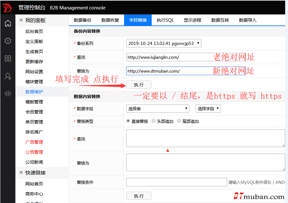 4-2:在查找里填老域名,记住填觉得网址 如果老域名是 https 记得写全,我们以http 为例,填写好对应的参数 点 执行