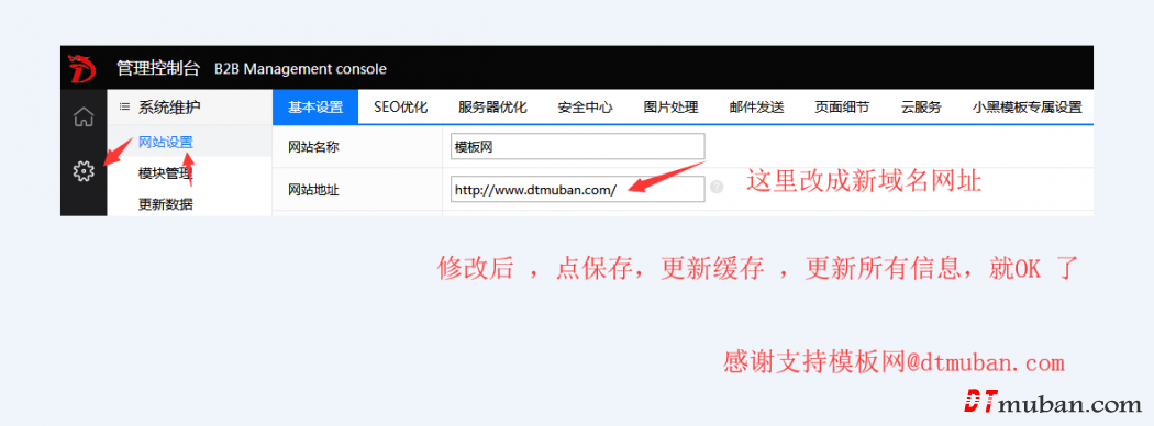 2-2:找到第1个域名管理, 填写新域名,如: www.dtmuban.com