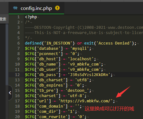 重点:如果老域名打不开网站了,我们还需要先改网站配置文件
