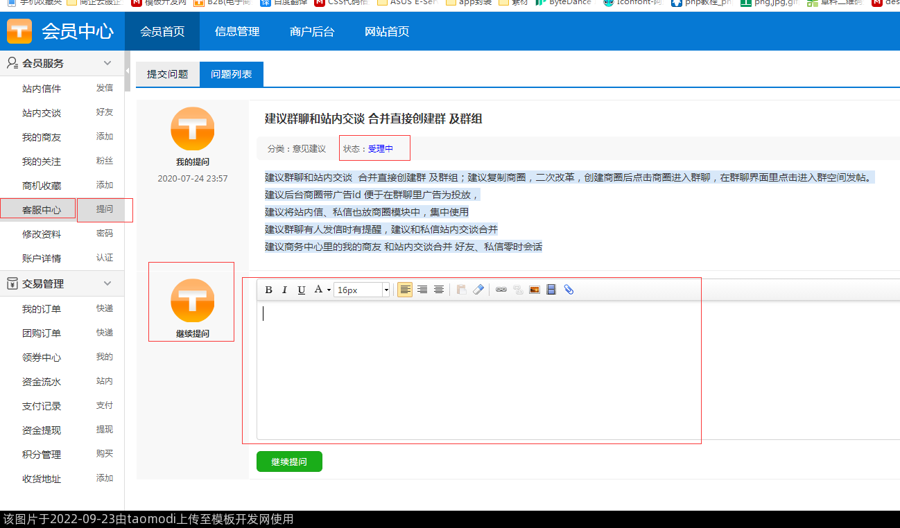 前端-会员中心-客服中心-提问终于可以在原问题上追问了