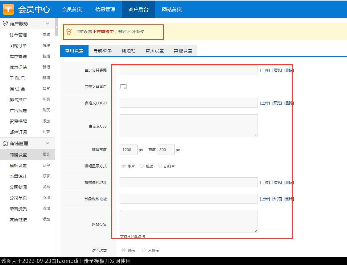 前端-会员中心-商铺设置审核状态