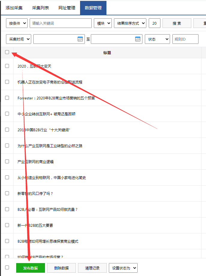1、找到后台功能-我的面板 - 数据采集 - 添加采集