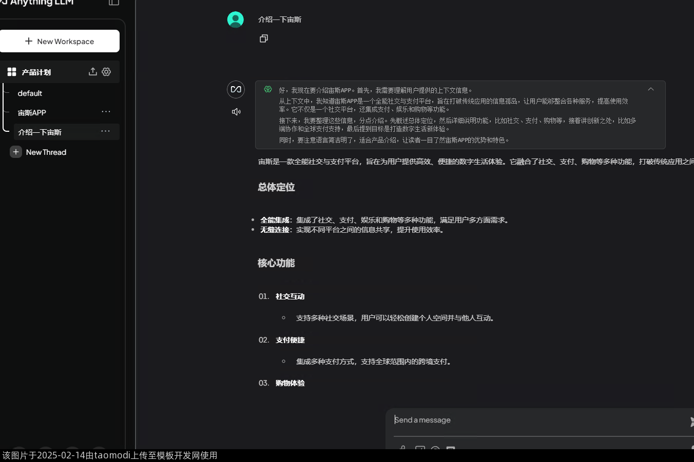 AnythingLLM将您的文档划分为称为workspaces (工作区)的对象。工作区的功能类似于线程,同时增加了文档的容器化,工作区可以共享文档,但工作区之间的内容不会互相干扰或污染,因此您可以保持每个工作区的上下文清晰。