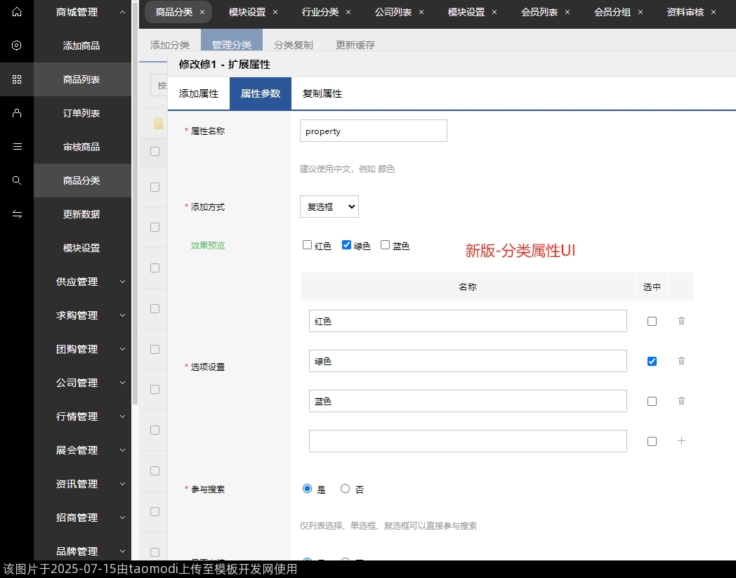 新版-分类管理-属性-分类属性UI