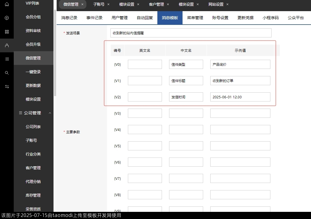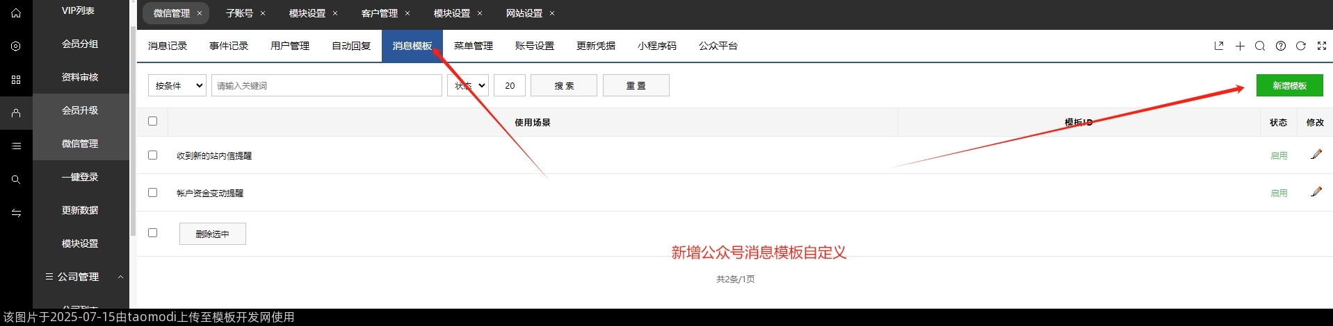 新增-会员管理-微信管理-消息模板-公众号消息模板自定义