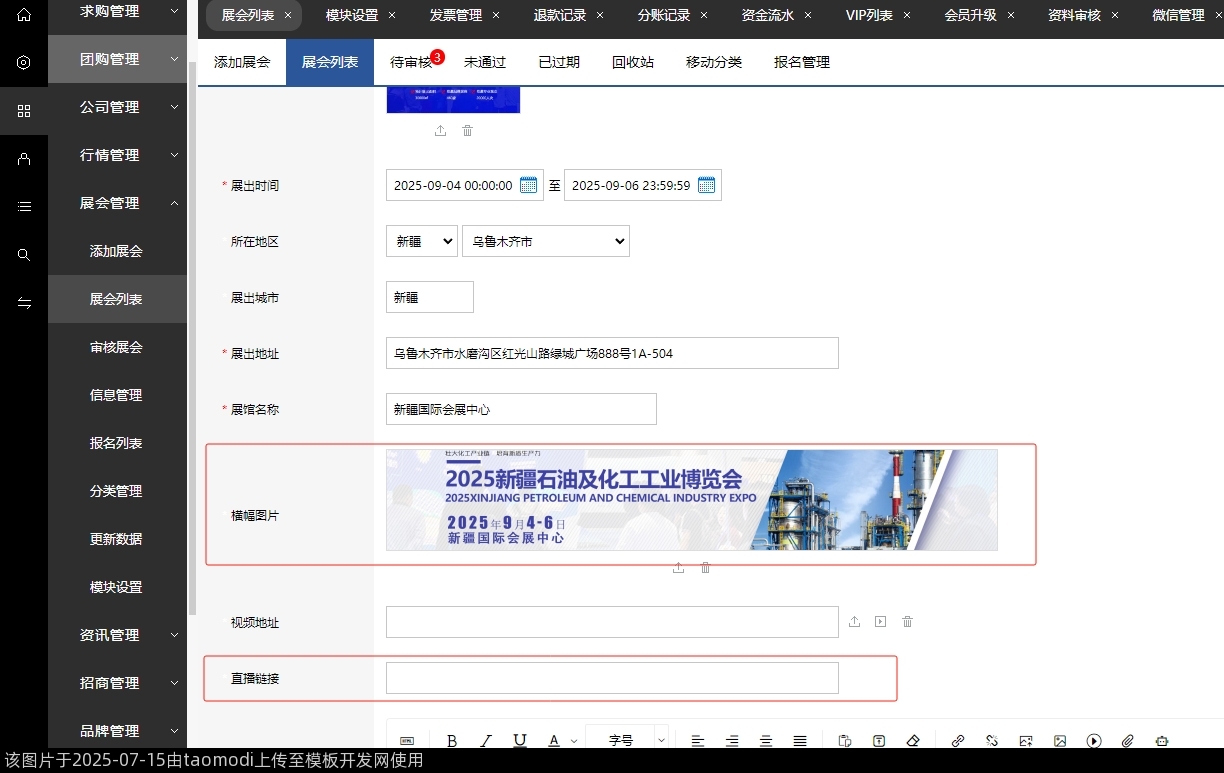 新增-展会模块-发布展会1-加入了横幅图、直播链接填写