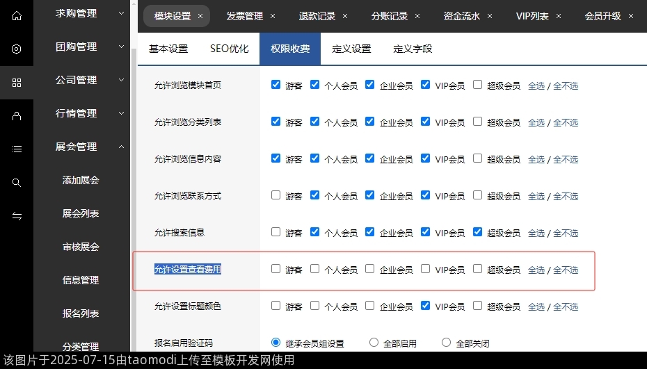 新增-展会模块-权限收费-允许设置查看费用