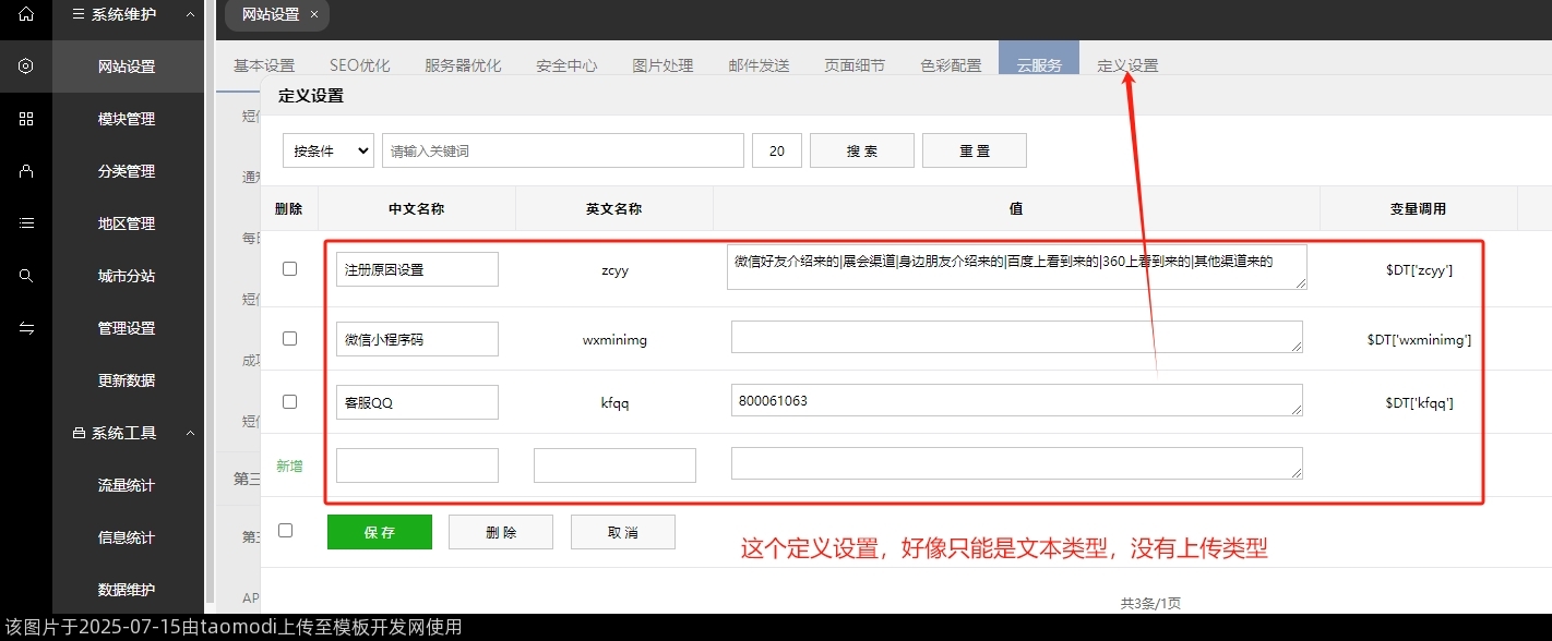 这个定义设置,好像只能是文本类型,没有上传类型