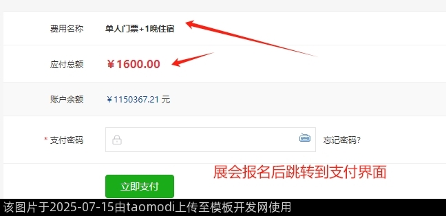 展会报名后跳转到支付界面