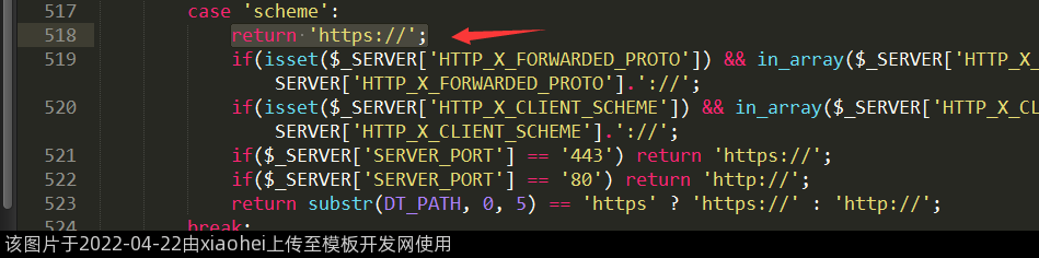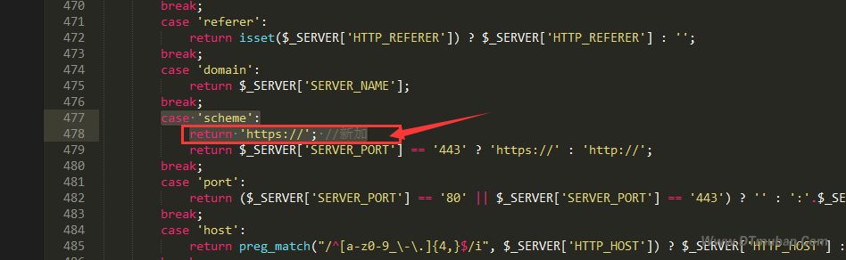 修改include/global.func.php文件,在case 'scheme':下面加入