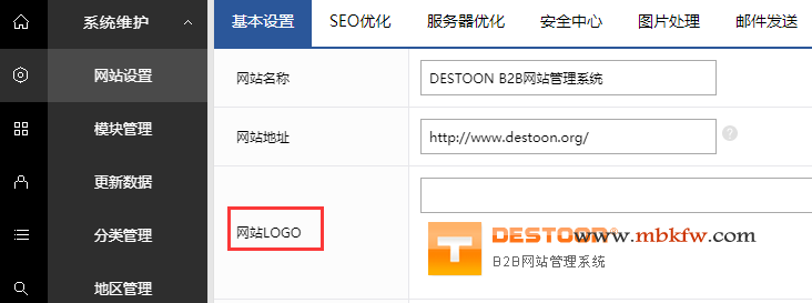 Logo图片最佳大小为180px*60px,准备好Logo图片之后,进入网站设置,如下图: