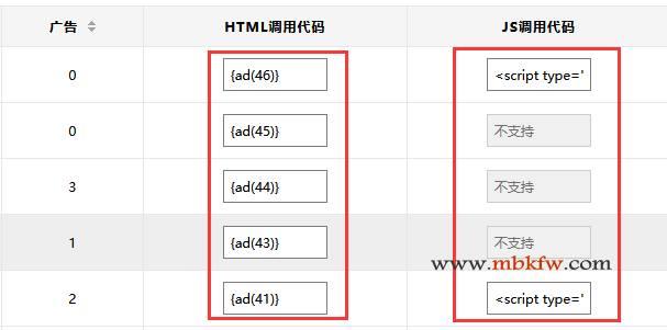 3.选择合适广告调用代码添加至网页模板需要显示广告的位置