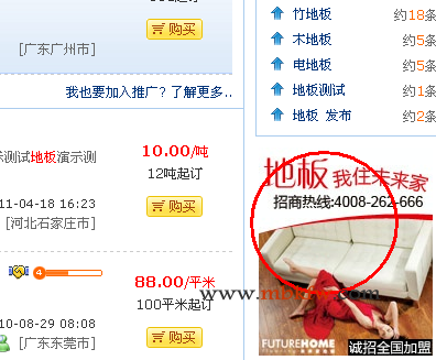 显示在信息列表或者搜索结果右侧的相关性广告,一个广告位可以显示多个广告。
