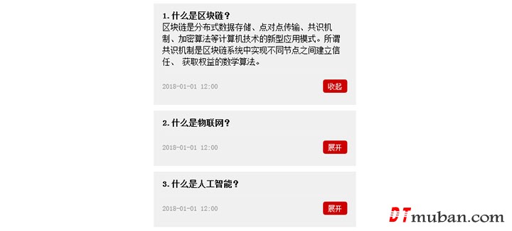 简单实用的jQuery点击展开显示文字内容代码,默认情况下只显示标题,点击展开按钮时,所有内容全显示,展开按钮变为收起按钮,点击收起按钮即收起展开的文字内容。