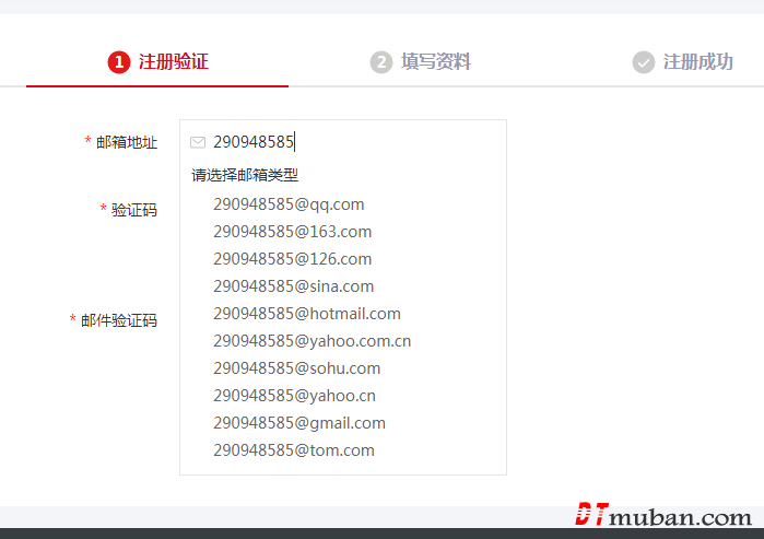 3、用户可以通过点击已匹配好的邮箱输入到框中