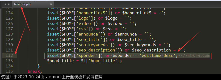 4、继续修改程序文件module/member/home.inc.php,找大约131行 的isset($HOME['seo_description']) or $seo_description = ''; 在下面加一行写入代码