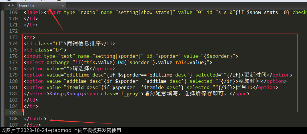 3、继续修改程序文件module/company/sell.inc.php,找大约90行 的$order = 'edittime DESC'; 在下面加一行写入代码(商铺信息我们以供应模块为例,其他模块的按同样的方法去改)