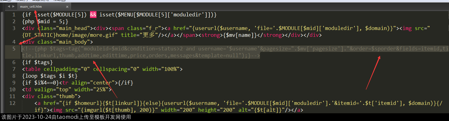 2、接着修改商铺模板,找到template/default/homepage/main_sell.htm (这里我们以默认模板为例),大约5行 的&order=edittime desc,把整行的标签代码改成以下代码