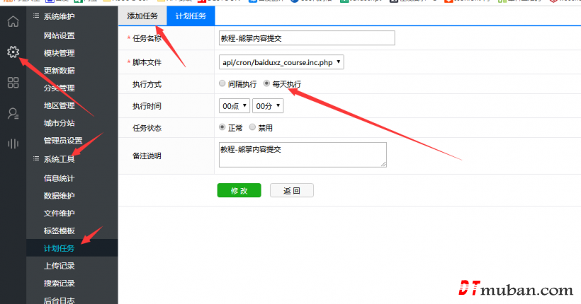 二步,在后台-定时任务 中添加一个任务 任务名称:文章熊掌内容提交