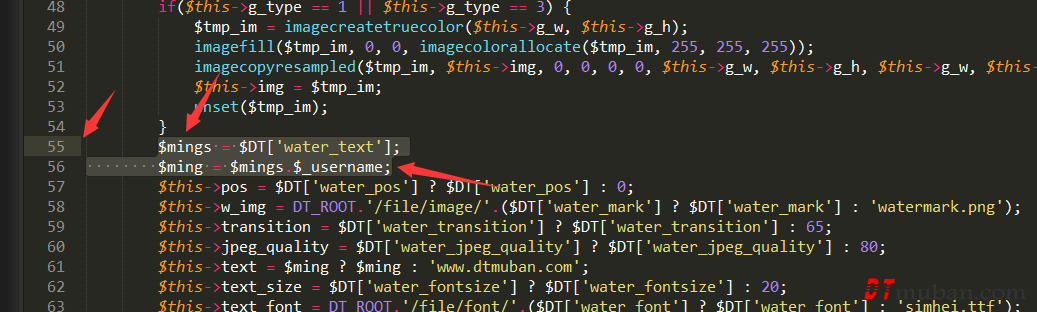 $mings = $DT['water_text']; $ming = $mings.$_username;