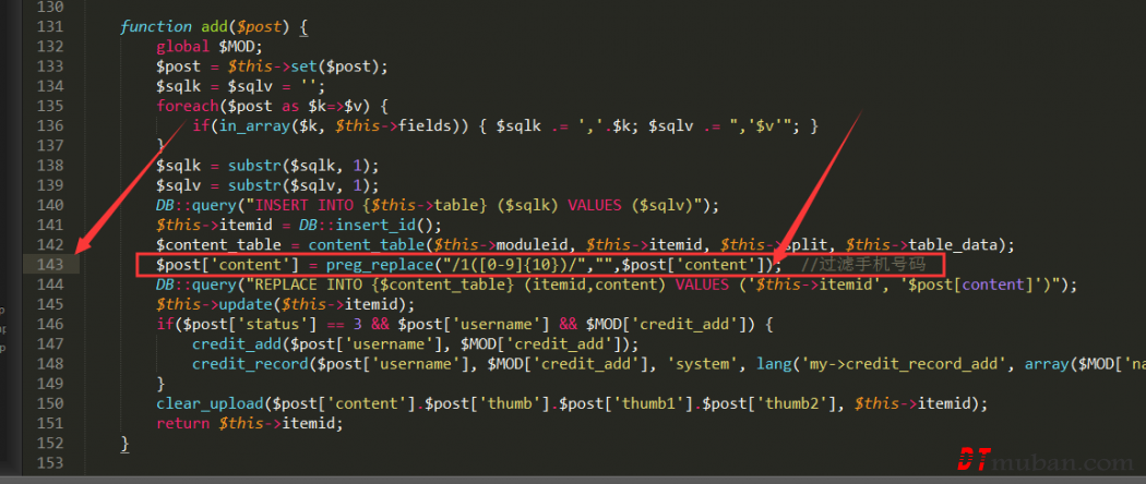 $post['content'] = preg_replace("/1([0-9]{10})/","",$post['content']);