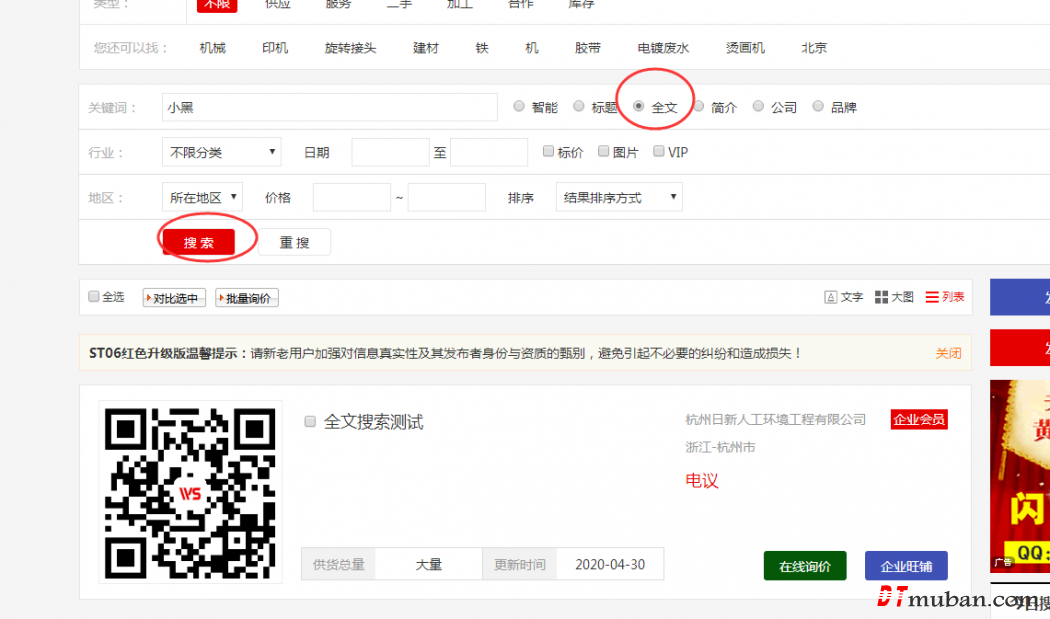 我们都知道,destoon每个模块的设置里都带有一个 普通全文搜索 的功能,今天我们讲讲这个功能是干什么的,。顾名思义就是搜索内容上的关键词的 , 但这个关键词必须前后要有空格,不然不支持参与全文搜索,