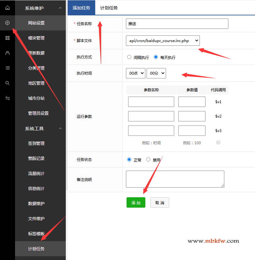 3、在后台任务计划功能里建一个计划,演示如图(实际参数看自己的情况):