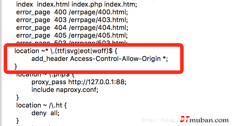 如下图,在红色框位置加入代码,其中ttf、svg、eot、woff为字体文件后缀,可自定义