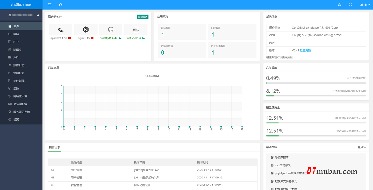 高效运维:通过可视化的web端面板可以轻松部署和管理上百个网站,另外可以时刻监控服务器和网站的运行情况,提升运维效率!