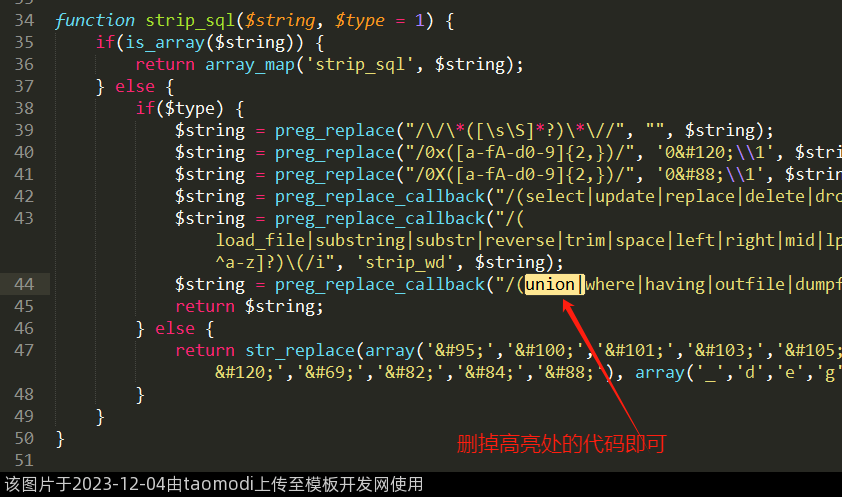 如果要解除屏蔽这个组合,可以修改include/safe.func.php文件,在这个文件中查找 union| 并删除即可解决