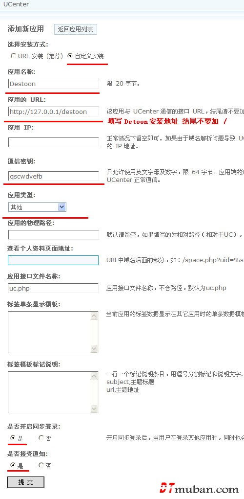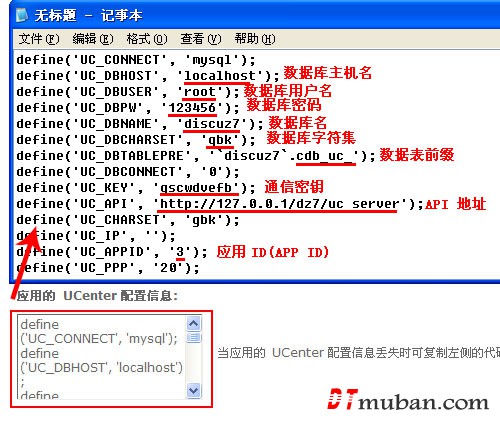 2、填写完毕后,点提交,将页面滚动至底部 复制其中的Ucenter配置信息至记事本