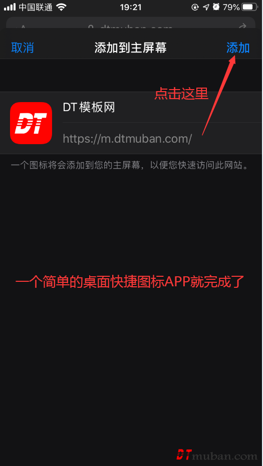 2、点开Safari图标后点击"添加到主屏幕"按键,如下图: