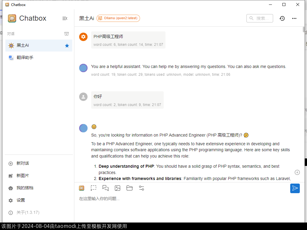 如果不想用网页版,也可以使用 Chatbox 软件版(Chatbox-1.3.17-Setup)