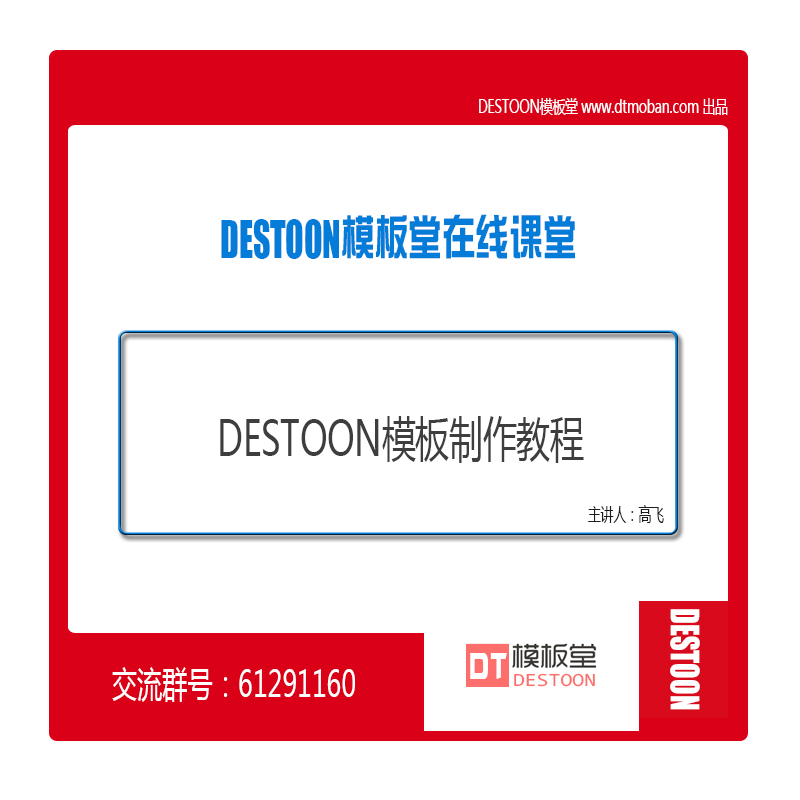 大家好,我是DESTOON模板堂高飞,这里是由我主讲的DESTOON模板制作初级教程,本教程由DESTOON模板堂(简称DT模板堂)原创录制,我们的网址是www.dtmoban.com,请认准,以防假冒!