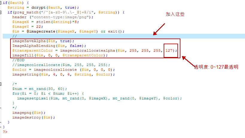 $transparentColor = imagecolorallocatealpha($im, 255, 255, 255, 127);