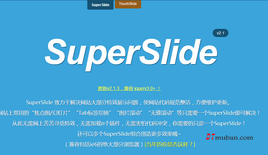 SuperSlide 致力于解决网站大部分特效展示问题,使网站代码规范整洁,方便维护更新。