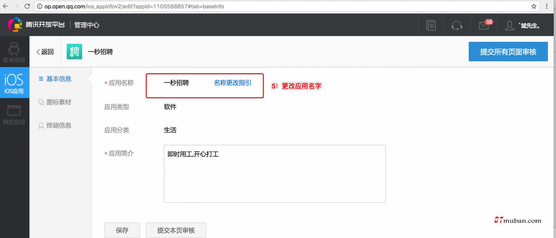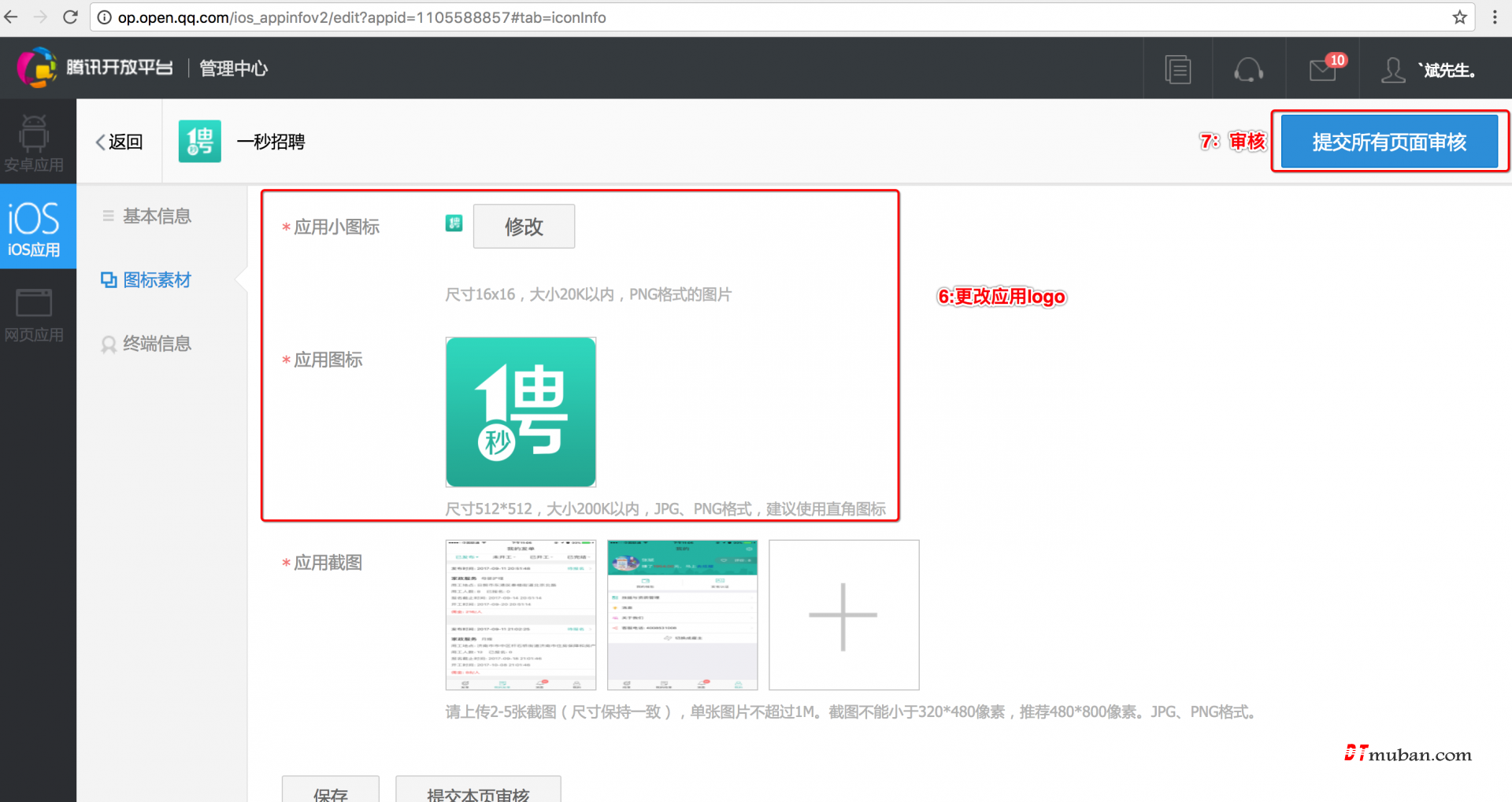 步骤5,6:修改应用昵称和应用图片,最后提交审核,我的审核大概需要5天左右,很慢的。