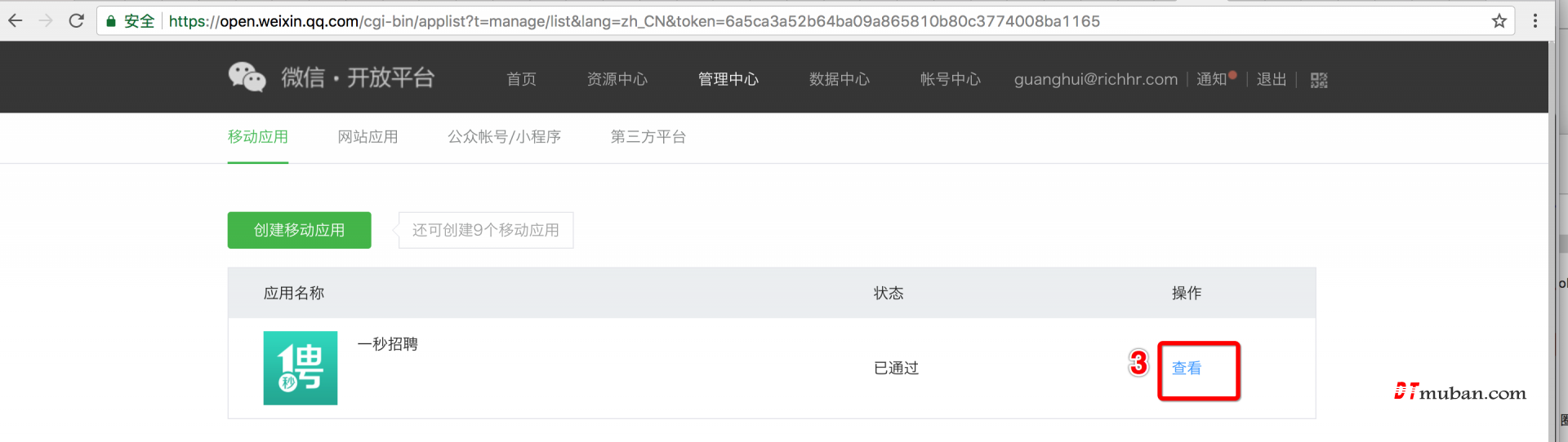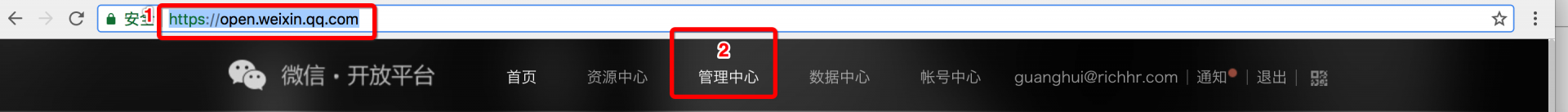 步骤1,2:登录微信开放平台,然后点击管理中心。