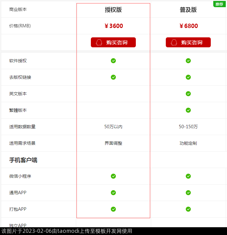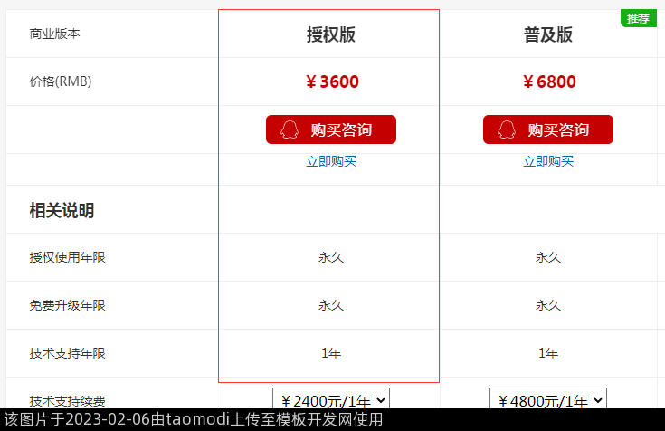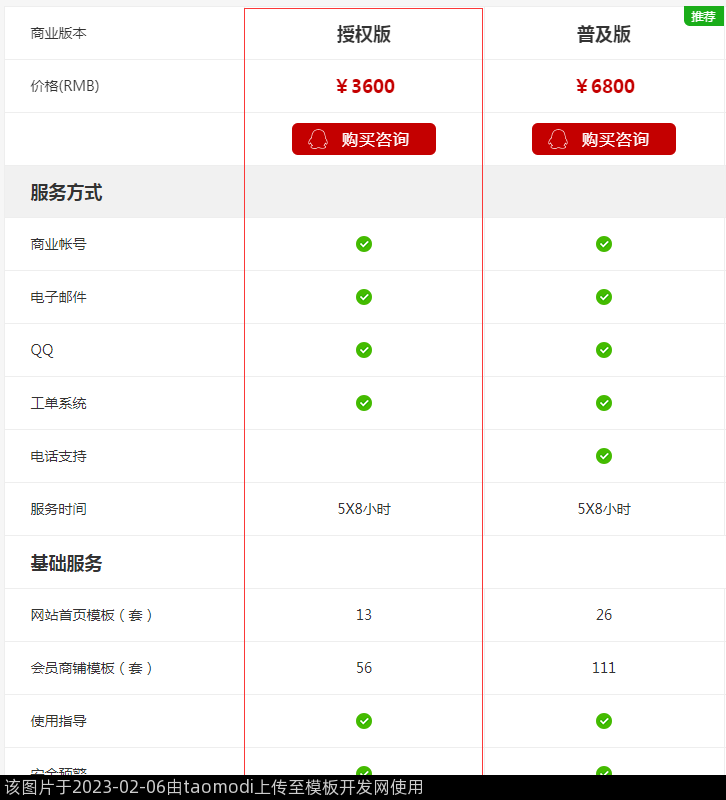 授权版:免费1年技术服务,送的模板由destoon提供(送13套首页模板+56套商铺模板)