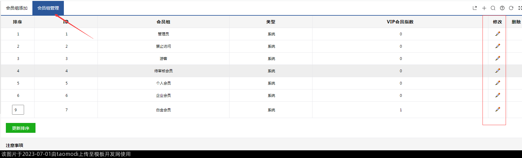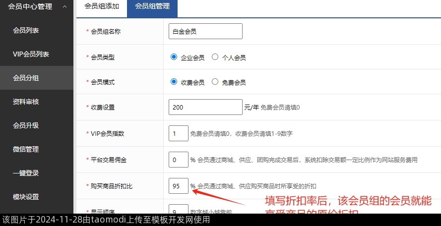 1-2、填写折扣率后,该会员组的会员就能享受商品的原价折扣