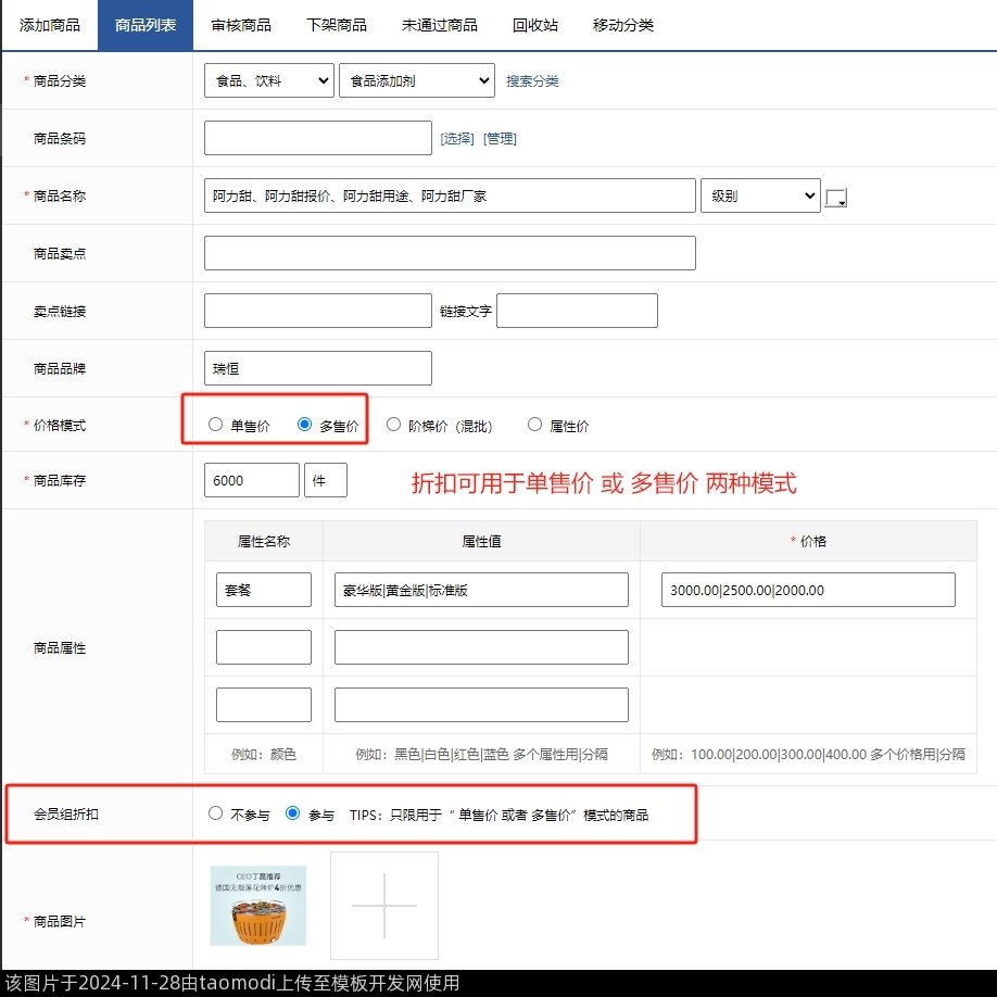 1、商城模块:只限用于 单售价 和 多售价 的商品