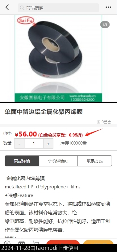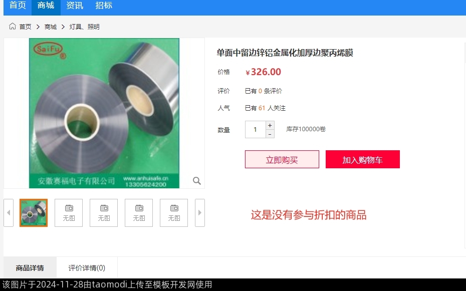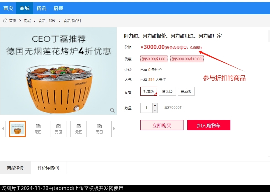折扣率在会员发布商品时有独立的选择:不参与 和 参与
