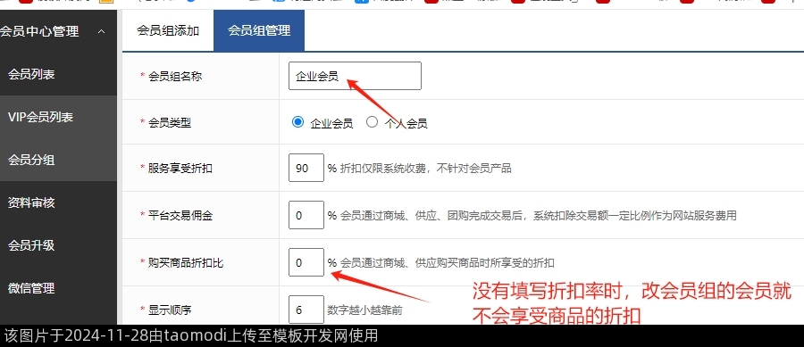 1-3、没有填写折扣率时,改会员组的会员就不会享受商品的折扣