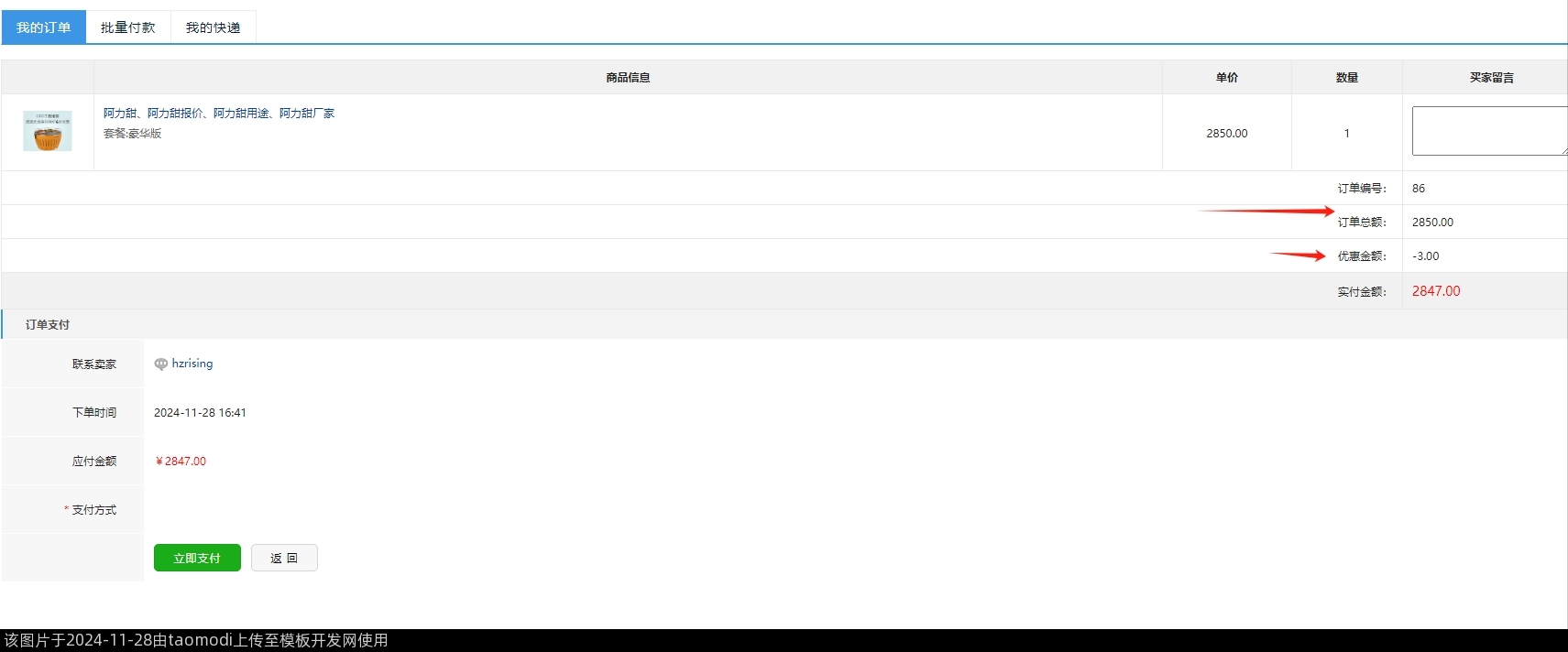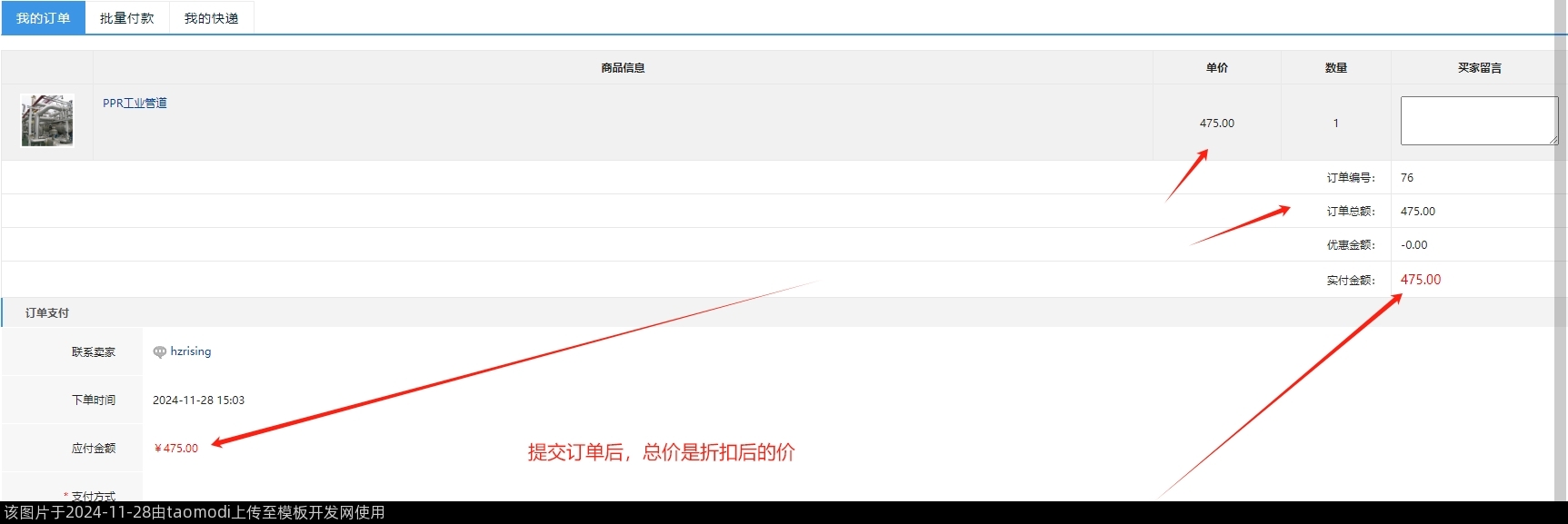 3-7、提交订单后,总价是折扣后的价(用了优惠劵时)