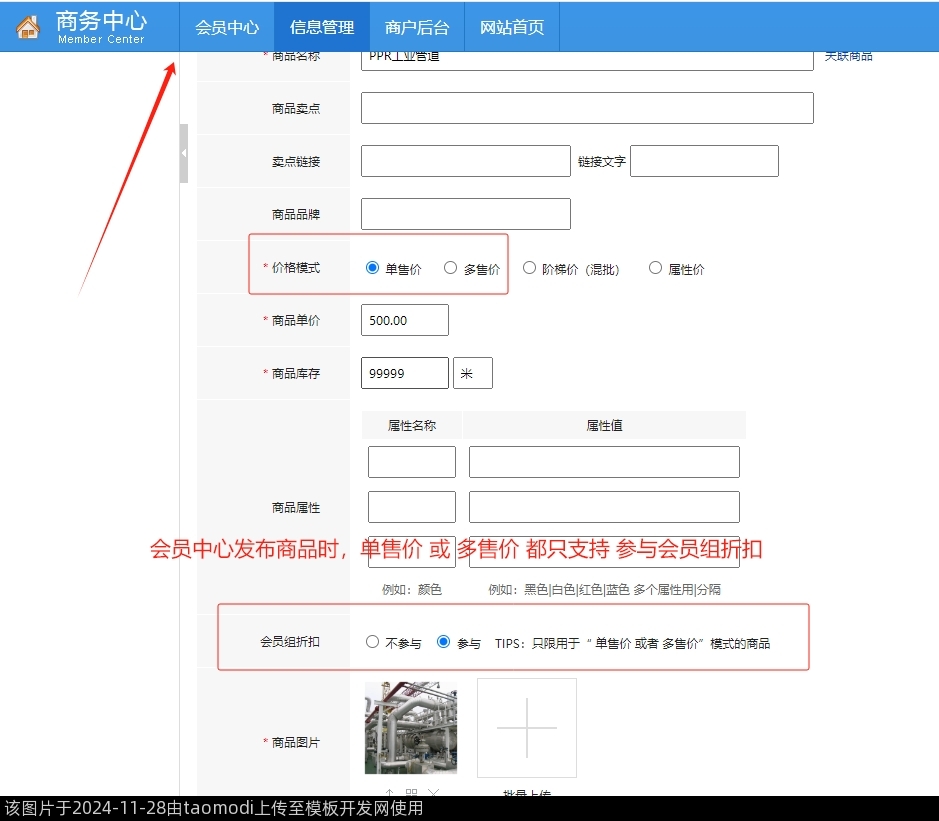 会员中心发布商品时