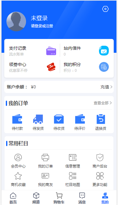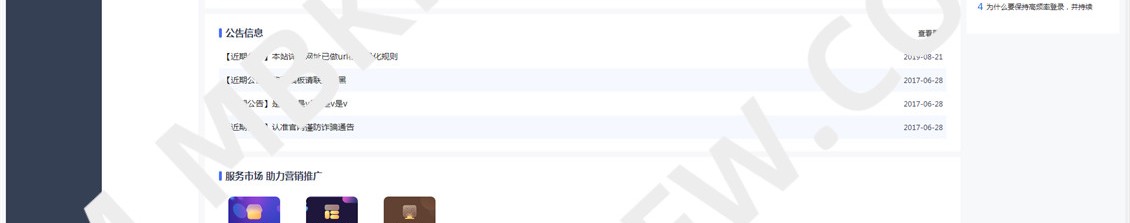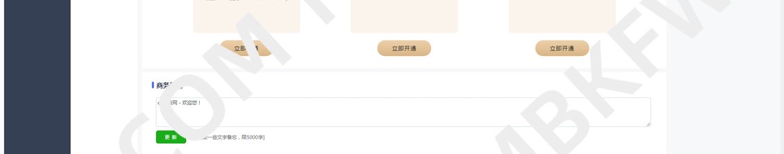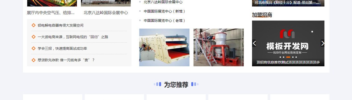 2、开发的模块有,主首页,供应模块,商城模块,采购模块,公司模块,品牌模块,招商模块,展会模块,视频模块,人才模块,商圈模块,资讯模块,行情模块,网站地图,网站留言,积分换礼,排名推广,会员注册和登录页面,关于我们系列的单页面,重点是商务中心加入了新的布局和元素。